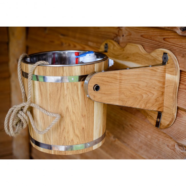 Schwalldusche zum abkühlen aus Eiche mit Edelstahleinsatz